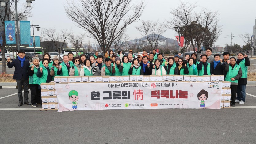 2026년 2월10일 안성시새마을회(회장 유만곤)는 설명절을 맞이하여 경기사회복지모금회 시랑의열매에서 지정기부금을 협찬받아 "한그릇의 정 떡국 나눔" 을 진행하였습니다. 1.5kg 상당 떡국떡 488개를 안성지역 취약계층에 섬겼습니다.