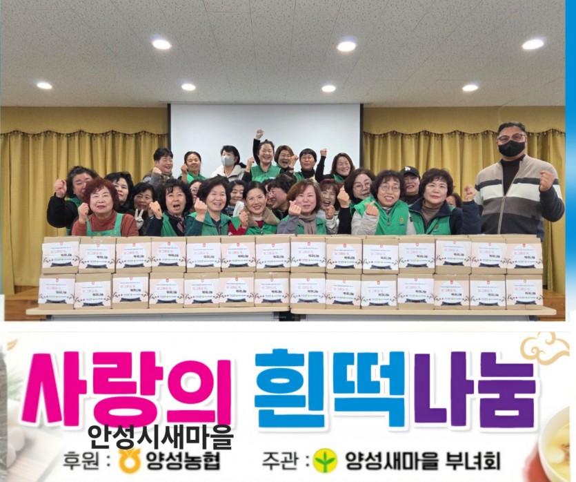 행사내용 : 안성시 양성면내 취약계층 105가구(양성면 70, 안성시 새마을회 35) 희떡 나눔 행사를 하였습니다.